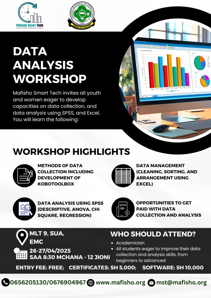 REGISTER FOR DATA COLLECTION AND DATA ANALYSIS WORKSHOP BY MAFISHO SMART TECH ON 26TH AND 27TH, APRIL, 2025 FROM 03:00 PM TO 06:00PM